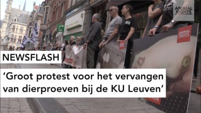 NEWSFLASH: Groot protest voor het vervangen van dierproeven bij de KU Leuven.